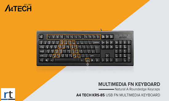 A4Tech KRS-85 USB  keyboard with English front and Bangla front. This keyboard allows doing key-strokes with a fingertip. It is also designed with 12 Fn-hotkeys, adjustable keyboard height, comfort round-edge keycaps, 150cm cable length, 454 x 153 x 32 mm dimension, 585g weight.