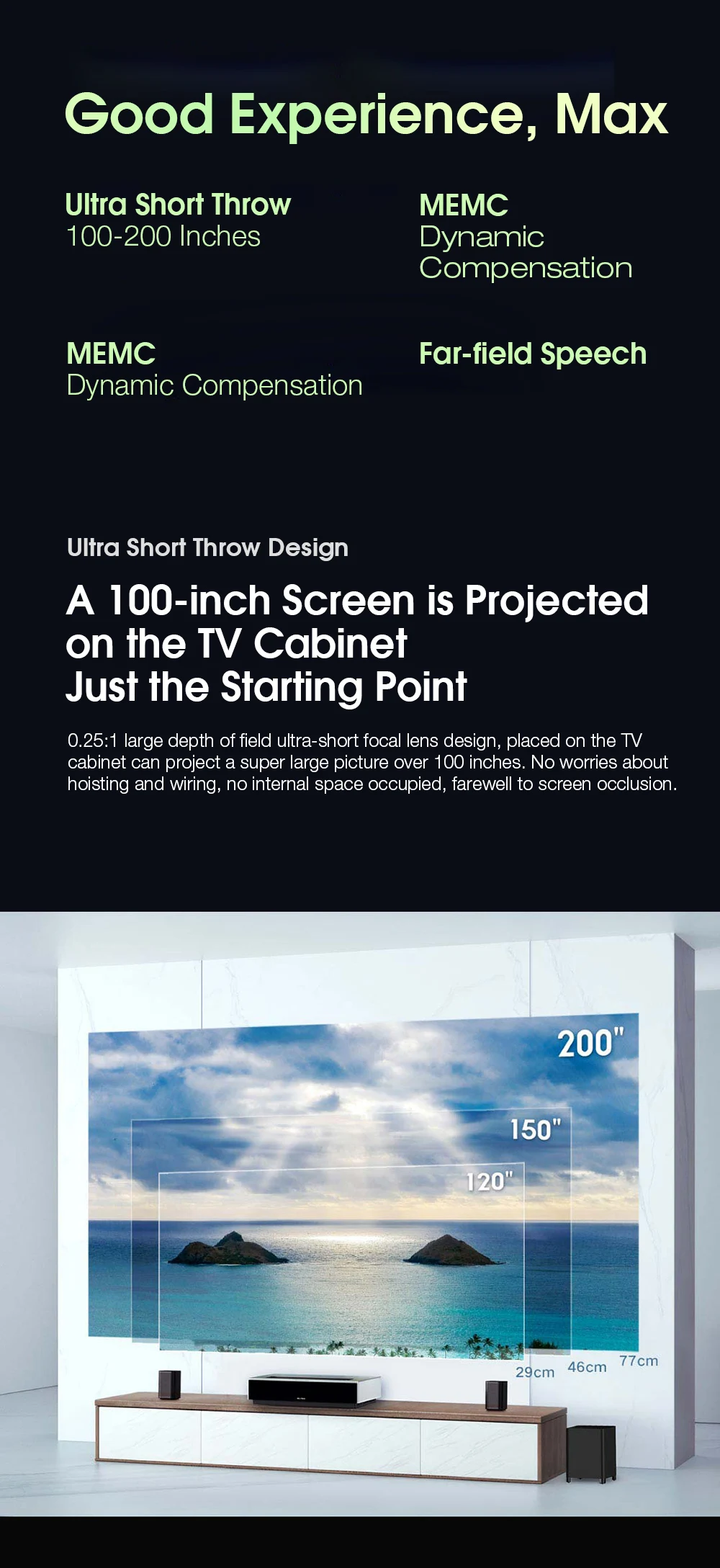 4500 Ansi Lumen With MeMC technology Fengmi Cinema 4k MAX Laser Projector for Home theater, Home Cinema, Gaming, Office, Business, Lectures, and presentations