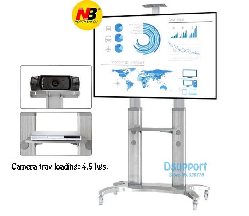 NB VF7017-S 55″-80″ LED LCD TV Cart Flat Panel Plasma TV Trolley Stand With Tray and AV Shelf