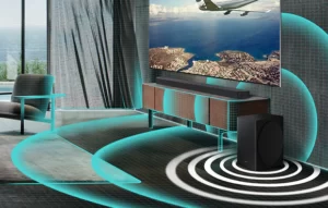 It supports Samsung Q symphony technology, Alexa voice assistant built into the bar, one subwoofer channel, two up-firing channels powered by 16 speakers, wide-range speakers are positioned at both corners of the soundbar for delivering sound from all angles, dual technology helps to flow sound above and around based on its distinction, various sound modes like surrounds sound expansion / game pro / standard / adaptive.